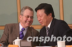 九月十日,中國文化部部長孫家正在北京宣布:中法兩國最大規模的一次文化交流活動——中國文化節將于今年十月六日在巴黎舉行。屆時將有文藝、教育、科技、體育、民族、旅游等各方面的三百余個項目向世界展示中華文化與文明和開放的、進步的當代中國形象。圖為孫家正部長與法國駐華大使藍峰親切交談。中新社記者:史利