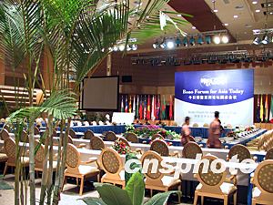 中遠(yuǎn)集團(tuán)投資建設(shè)的博鰲亞洲論壇永久會(huì)址——博鰲亞洲論壇國際會(huì)議中心,將于二十二日揭幕。該中心位于博鰲東嶼島,建筑面積為三萬七千平方米,共有大小十六個(gè)設(shè)施先進(jìn)的會(huì)議廳,主會(huì)場可以容納二千五百人。這是即將在明天召開“今日博鰲亞洲論壇:回顧與展望圓桌會(huì)議”會(huì)場。中新社記者關(guān)向東攝