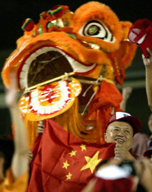 圖:中國(guó)雄獅為女足隊(duì)員的勝利舞起