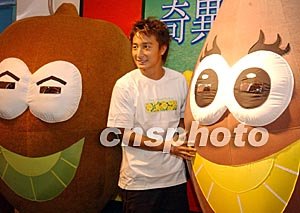 香港歌手方力申,九月二十三日以ZESPRI宣傳大使身份在慶祝會上與“奇異果卡通形象”在一起。中新社記者:錢興強(qiáng)