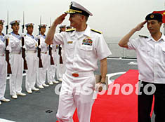 9月23日,率領美國艦艇編隊訪問湛江南海艦隊的凱利將軍在南海艦隊參謀長侯月喜將軍陪同下,參觀中國“深圳”號導彈驅逐艦和“玉林”號導彈護衛艦。作者:韓海冰