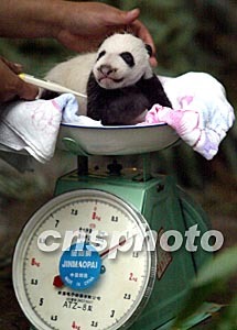 北京動物園大熊貓“妞妞”8月24日產(chǎn)下的幼崽在9月24日滿月之日第一次睜開了雙眼,小家伙已經(jīng)初具大熊貓的外貌,體重從出生時的150克猛增到1160克。中新社記者:任晨鳴