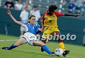美國當地時間9月25日16點15分,2003年第四屆女足世界杯D組加納隊對俄羅斯隊的比賽在美國洛杉磯南部卡森的The Home Depot Center體育場舉行。上半場俄羅斯隊1比0領先下半場俄羅斯隊擴大戰果,最終以3比0獲勝。作者:劉占坤