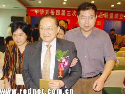 9月27日上午,推選產生的“五岳聯盟”首任執行主席(盟主)劉麗華為首任“五岳聯盟”榮譽盟主金庸先生頒發了聘書,金庸先生將早已備好的一柄上書“五岳聯盟,天下稱雄”的雄心寶劍贈給首任盟主劉麗華。