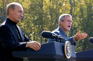 美國總統布什與俄羅斯總統普京27日舉行了會談。在會談后的一個新聞會上,兩國領袖呼吁朝鮮停止他們的被認為是核武發展計劃的項目,敦促伊朗與國際原子能機構合作。