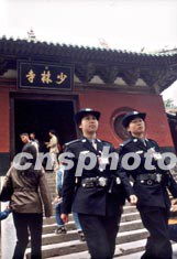 十月八日,兩名女警在河南登封少林寺景區巡邏。登封市公安局特意在國慶黃金周前成立少林女子派出所,以使景區更具親和力。這個派出所由二十二名女警官組成,每人都接受了擒拿格斗、交通指揮、專業英語和導游知識等訓練。不僅能辦理案件、懂人文地理,還能用外語導游。作者:慎重