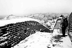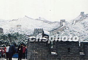 這是記者在延慶八達嶺長城上所見到的美景。長城管理處的張先生告訴記者,前天下午5點左右,這里就開始飄起雪花,等到凌晨時分,雪越下越大,早晨起來發現,四周已是銀裝素裹,一片冰雪世界。當時,“大雪山”和雪長城完全映入眼簾,遠處的山巒白雪覆頂、云霧橫腰。而令人驚奇的是,今年長城下雪過后,天氣立時放晴,使得長城出現了藍天、白云、長城、紅葉、霧靄、雪山、霧、雨簾共存的奇觀。據此間氣象專業人士介紹,十月秋雪在八達嶺雖不常見,卻也并非絕無僅有,僅2001年和2002年就曾分別于10月3日、10月25日各有一場。但昨天奇就奇在雪后驟晴,使陽光下七種自然景物和長城這一人文景觀交相輝映。