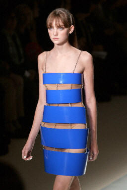 在巴黎2004春夏女裝展上,模特展示了設計師Paco Rabanne的另類新作。