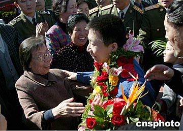楊利偉凱旋 妻兒機場迎接