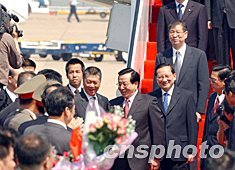 十月十七日國家副主席曾慶紅蒞臨澳門訪問,國務委員唐家璇,全國政協副主席、國務院港澳辦主任廖暉隨同抵達。中新社記者:潘索菲