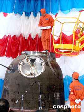 圖:神舟五號載人飛船回收艙開艙