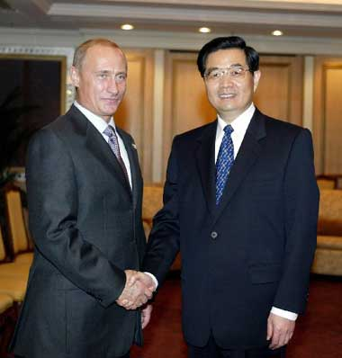 普京表示完全贊同胡錦濤對當前兩國關系的看法。他說,《俄中睦鄰友好合作條約》為俄中發展新世紀戰略協作伙伴關系奠定了法律基礎。俄中關系發展順利,雙邊貿易增長迅速,在國際事務中的磋商、協調和合作不斷擴大。從各方面看,俄中兩國關系中不存在任何不能解決的問題和障礙,所需要的就是更好、更快地開展友好合作。普京還熱烈祝賀中國成功進行首次載人航天飛行。