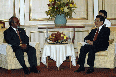 中新網10月20日電 新華網報道說,中國國家主席胡錦濤19日下午在曼谷會見了巴布亞新幾內亞總理索馬雷。胡錦濤說,中國和巴新兩國人民有著長期友好交往的歷史。近年來通過我們雙方的共同努力,兩國關系順利發展。雙方高層交往不斷,經貿合作成果顯著,巴新已成為中國在南太島國中最大的貿易伙伴。在太平洋島國論壇、亞太經合組織、聯合國等地區和國際組織中,我們雙方也進行了密切的合作。