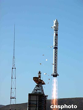 中新網(wǎng)太原10月21日電(記者孫自法)北京時(shí)間二十一日中午十一時(shí)十六分,中國(guó)和巴西聯(lián)合研制的中巴地球資源衛(wèi)星0二星和中國(guó)科學(xué)院研制的“創(chuàng)新一號(hào)”小衛(wèi)星,在太原衛(wèi)星發(fā)射中心由“長(zhǎng)征四號(hào)乙”運(yùn)載火箭一箭雙星成功發(fā)射升空。