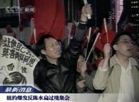 中新網(wǎng)11月1日電 據(jù)央視國際報道,美國紐約各界人士約上千人于當(dāng)?shù)貢r間10月31日晚在臺灣當(dāng)局領(lǐng)導(dǎo)人陳水扁所住的曼哈頓華道夫-阿斯多里亞飯店前舉行抗議示威,反對他借“過境”美國之機(jī)搞“臺獨”。