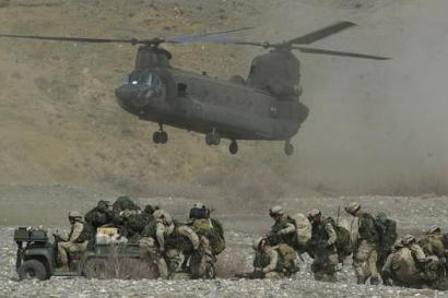 美國(guó)軍方稱,一架美軍“支努干”直升機(jī)星期天在飛往巴格達(dá)機(jī)場(chǎng)時(shí)被擊落,至少有二十人在這一事件中傷亡。圖為被擊落的同型直升機(jī)資料圖片。