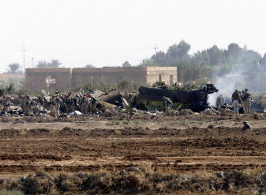自齋月開始的一周內,伊拉克發生針對美軍的襲擊活動平均每天超過30次,美軍士兵死亡人數平均每天超過2人。而此前平均每天發生15至20次襲擊,每兩天陣亡一名美軍士兵。除巴格達外,巴格達以西60公里的費盧杰鎮是發生襲擊活動最頻繁的地點。費盧杰位于被稱為“遜尼派三角地帶”的區域內。該區域位于巴格達、伊北方城市提克里特和西部城市拉馬迪之間,是伊拉克遜尼派穆斯林聚居的地區。伊拉克前總統薩達姆今年9月1日在卡塔爾半島電視臺播放的錄音講話中,稱費盧杰是伊拉克“抵抗運動的首都”。11月2日美軍運輸直升機被擊落的前幾天,就先后發生了費盧杰警察局遭汽車炸彈襲擊和費盧杰鎮政府辦公樓遭不明身份武裝人員襲擊等嚴重事件。11月1日這一天正值美國總統布什今年5月1日宣布伊拉克主要戰事結束的半周年。此前的數天內,巴格達一些公共場所出現了以伊拉克前總統薩達姆領導的“阿拉伯復興社會黨地區領導機構”名義散發的傳單,宣布11月1日為“抵抗日”,并表示將在3天內采取更多行動。這份傳單使巴格達幾乎陷入癱瘓狀態。駐伊美軍加強了戒備,如臨大敵。