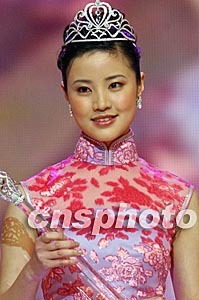 “2003中華小姐環球大賽”總決賽11月8日晚在香港會展中心舉行,經角逐來自上海的參賽選手江欣榮獲中華小姐大賽冠軍。中新社記者:錢興強