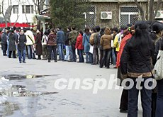 今天是研究生報名的第一天,在北京大學、師范大學等高校的研究生報名點都排起了長隊,最長的隊伍有數(shù)百米。過去報名需要審查登記表,今天只是照相和領取準考證。與往年不同的是,在職人員報考時,工作人員不在要求他們出示單位證明,報名登記表上也無需單位公章。