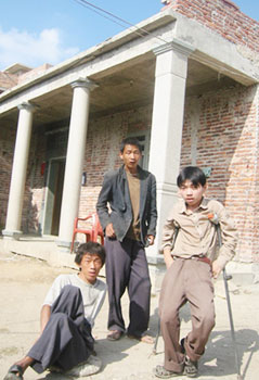 12月6日記者采訪了戴家。戴家的兩位老人已經去世多年。扔下了4個殘疾孩子和老母親。戴家的長子戴清鎮,37歲,患有精神病,經常發作。記者沒有看到他,據隨行的村干部說他已經離家出走多日,音訊全無;二兒子戴金龍,30歲,癡呆,沒有任何勞動能力;三兒子戴振明,28歲,小兒麻痹,完全癱瘓;四兒子戴暫缺,25歲,手拄雙拐。唯一的健全人是35歲的戴雙治。她和丈夫擔負起了照顧全家的重擔。