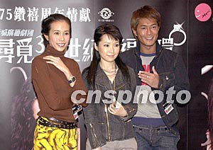 歌星莫文蔚、古天樂、關心妍11月18日在香港出席新城電臺廣播劇《尋覓3/4世紀幸褔鉆環》記者會,三位廣播劇主角獲贊助商贈送首飾打氣。作者:鄧慶樂