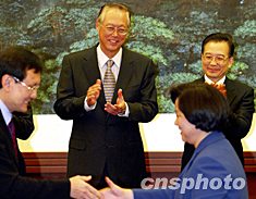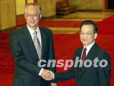 中國國務院總理溫家寶十八日在北京會見新加坡總理吳作棟。中新社記者:鄭萍萍