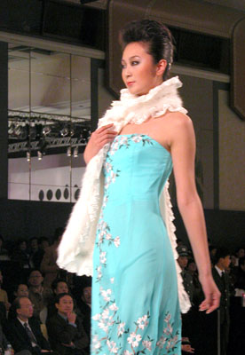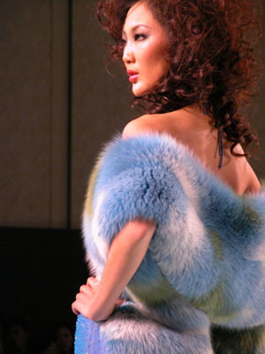 中國國際時裝周NE·TIGER 2003/2004高級皮草晚裝,個性奢華寶藍(lán)系列。