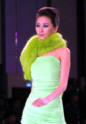 中國國際時裝周NE·TIGER 2003/2004高級皮草晚裝,湖水綠個性色系列。