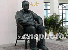 進入一樓大展廳,迎面就是巴金文學(xué)院的代表性雕塑——巴老青銅像,由四川省著名雕塑家譚云創(chuàng)作,被放置在一個高五米、寬三點六米的基座上,基座后面是一堵漢白玉墻,上刻巴老手跡“講真話——把心交給讀者”。二樓為大型展覽《世紀真情》,也于今天下午開幕。