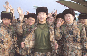 中新網11月29日電 解放軍報報道說,西藏軍區部隊從今年開始全部換發新型高原防寒服裝。28日上午,首批進藏的3000余名新兵穿著新型高原防寒服,精神抖擻地登上飛機,奔赴世界屋脊。
