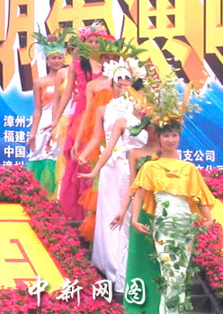 參加花博會“形象大使”選拔的美女亮相花博園廣場系列文化活動。