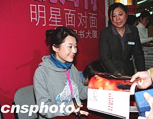 十二月六日下午三時,基本淡出娛樂圈的“美女明星”許晴在北京圖書大廈參加《E·T衛視周刊》雜志社舉辦的明星面對面現場簽名活動。作者:徐曦弋