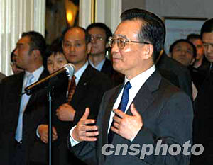 溫家寶還報出了很多杰出華人的名字。他說,在這一個半世紀里,許多華人已經能夠獨立地在美國生存發展,為促進中美友誼作出了貢獻。這當中有許多人在各行各業都成為一支重要力量,其中不乏許多杰出人物,如楊振寧、李政道、貝聿銘等一大批科學技術人才;也包括趙小蘭、駱家輝等杰出的政界人才,還有一大批商界人才,“這都是你們奮斗的結果。”