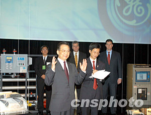中國總理溫家寶美東時間十二月八日下午在紐約參觀美國通用電氣公司(GE)時表示,希望GE把產品、先進技術、管理經驗、人員培訓和中美友誼帶到中國。中新社記者:趙海燕