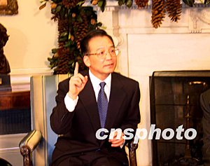 當天上午的歡迎儀式后,溫家寶與布什先進行了小范圍會談,會見了記者,然后雙方又進行了大范圍會談,就中美關系和一些重大國際問題交換了看法。