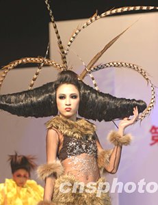 十二月十日晚的中國國際美容美發節舞臺上,由北京毛戈平形象設計藝術學校學員設計的彩妝造形,驚艷四座。中新社記者:史利