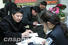 十二月十五日,幾名市民正在鄭州市公安局出入境管理處辦理赴港澳的證件。來自鄭州市公安局出入境管理處的數字顯示,隨著春節的臨近,前來辦理出境旅游手續的民眾與日俱增。作者:慎重