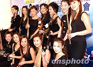 日前在日本演出獲得成功的女子十二樂坊,十二月十五日在香港舉行新聞發(fā)布會,該樂坊將在香港進(jìn)行專場演出。圖為十二位樂坊美女各持樂器亮相。中新社記者:錢興強(qiáng)