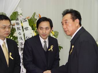 中新社北京十二月十七日電 臺(tái)灣著名企業(yè)家溫世仁先生不幸因病于十二月七日在臺(tái)北逝世。十二月十七日,中共中央臺(tái)辦、國(guó)務(wù)院臺(tái)辦主任陳云林、海峽兩岸關(guān)系協(xié)會(huì)常務(wù)副會(huì)長(zhǎng)李炳才一行,以及北京市有關(guān)方面負(fù)責(zé)人前往英業(yè)達(dá)集團(tuán)(北京)電子技術(shù)有限公司悼念溫世仁先生,對(duì)其在兩岸經(jīng)貿(mào)合作和大陸西部開(kāi)發(fā)所做的杰出貢獻(xiàn)予以高度評(píng)價(jià),希望海峽兩岸有識(shí)之士共同完成溫世仁先生未竟事業(yè),同時(shí)向其家屬轉(zhuǎn)達(dá)誠(chéng)摯問(wèn)候。