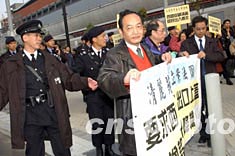 香港九廣西鐵12月20日正式通車,有團體在啟用儀式會場拉起橫幅要求九廣西鐵增加設施方便市民出入。中新社記者:洪少葵