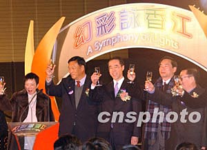 香港特別行政區(qū)財(cái)政司司長(zhǎng)唐英年、國(guó)家旅游局局長(zhǎng)何光偉等十二月二十日晚出席香港“幻彩詠香江”啟動(dòng)儀式。中新社記者:錢興強(qiáng)