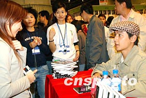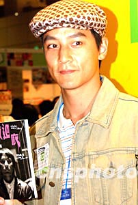 香港藝員吳彥祖十二月二十六日在香港會展中心舉行的“書節2003”上,為電影原著小說《妖夜回廊》簽名。中新社記者:錢興強