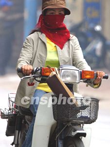 越南河內(nèi)市騎摩托車的女性大都用口罩或紗錦遮口掩面,以防避陽光和灰塵。摩托車是該市市民出行的主要交通工具。中新社記者:宋吉河