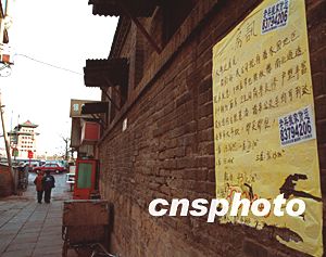 北京著名商業區——前門大柵欄地區十二月底面臨大規模的修繕改建,租房、售房及搬家公司瞅準“商機”,在危房改造集中地做起廣告。作者:張雷