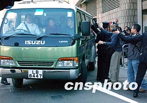 香港藝人梅艷芳因子宮頸癌導(dǎo)致肺功能失調(diào),于十二月三十日凌晨二時五十分在香港病逝,三十日中午梅艷芳遺體由養(yǎng)和醫(yī)院送往香港殯儀館。中新社記者:錢興強