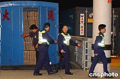 元旦凌晨,「內(nèi)地與香港關(guān)于建立更緊密經(jīng)貿(mào)關(guān)系的安排」正式實(shí)施。香港海關(guān)已做好兩地貨物的通關(guān)監(jiān)管程序,圖為落馬州海關(guān)凌晨檢查貨物。作者:潘索菲