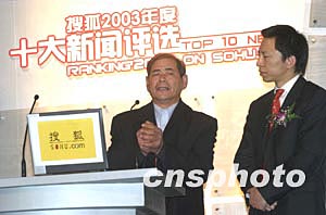 一月六日晚,被評為2003年度搜狐網新聞人物的孫志剛,其父專程來京替子領獎,在現場他熱淚盈眶,鞠躬作揖,感激將《孫志剛事件》公布于眾并主持正義的新聞媒體。中新社記者:史利