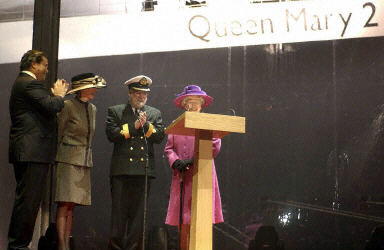 1月8日,世界上最大的豪華游輪“瑪麗女王2號”輪停泊在英國南安普敦港!艾旣惻2號”游輪噸位為15萬噸,造價約6.4億歐元。它于2003年12月22日在法國圣納澤爾港下水,并于1月8日在南安普敦接受英國女王伊麗莎白二世的正式命名。