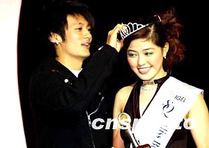 “亞洲最美麗的眼睛評選”總決賽,元月10日在香港演藝學院舉行,來自中國、馬來西亞、新加坡及印度尼西亞的10名入選佳麗在天橋舞臺進行多個環節的角逐,最后,冠軍由馬來西亞美女Ester Tan[左]獲得,雙亞軍分別由中國佳麗Li na [左二]及新加坡佳麗Greta Georges Habib [右二]獲得,而季軍則是香港的Sarah Lai。中新社記者:洪少葵