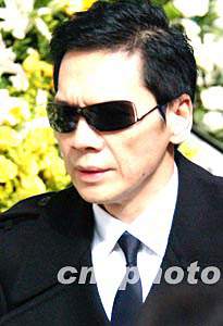 一代歌后梅艷芳元月十二日在香港殯儀館舉殯,香港中國星電影老板向華強前來告別梅艷芳。 作者:錢興強